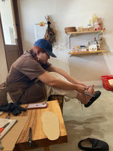 廃タイヤのソールと革紐で作られた「走れるサンダル」です。